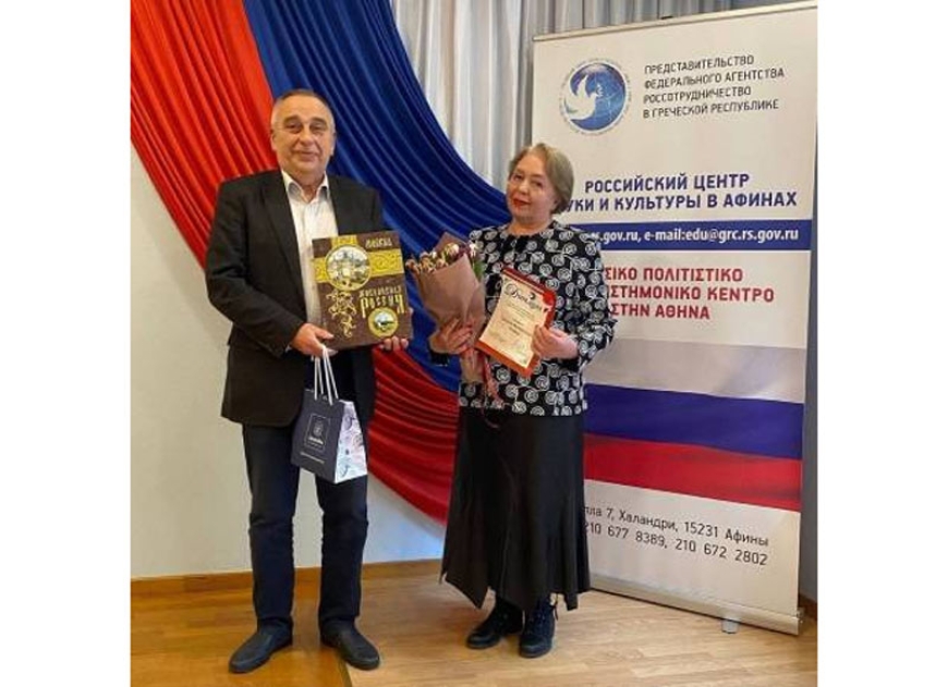 - Мы ценим ваше творчество и всячески приветствуем ваши усилия по продвижению русского языка и культуры, - сказал, поздравляя Т. Кипреу, директор Русского Дома в Афинах Сергей Михайлович Хоменко.