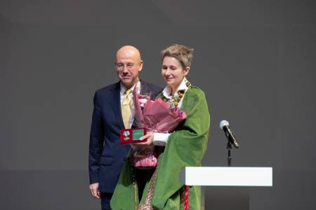Нагрудный знак МИД РФ «За взаимодействие» художнице вручил Директор Департамента по многостороннему гуманитарному сотрудничеству и культурным связям МИД России, председатель правления фонда «Русский мир» Александр Алимов